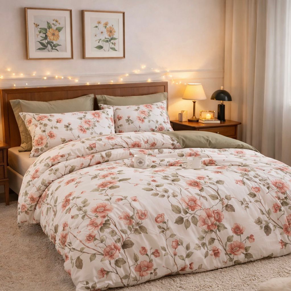 Bawełniana dwustronna pościel w kwiaty 200x220