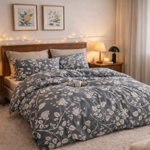 Bawełniana dwustronna pościel w kwiaty grafitowa 160x200