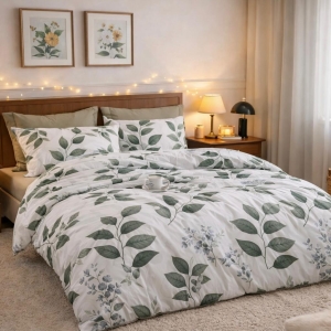 Elegancka pościel bawełniana dwustronna z delikatnym wzorem w liście to idealna propozycja do jasnych i przytulnych sypialni. Subtelne motywy florystyczne nadają wnętrzu romantycznego charakteru, a jednolita, gładka druga strona pozwala szybko zmienić aranżację łóżka.