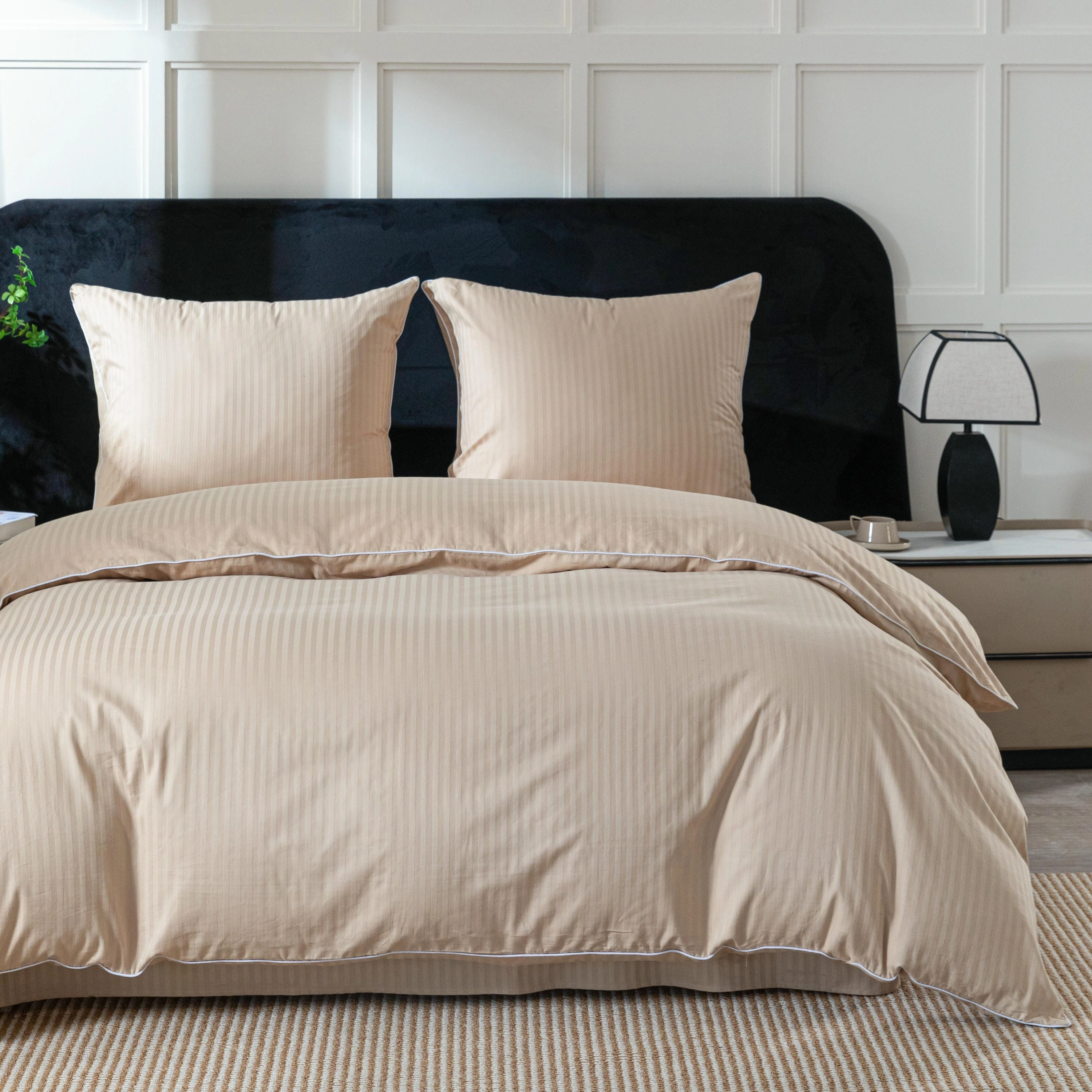 Elegancka pościel bawełniana w pasy z lamówką
