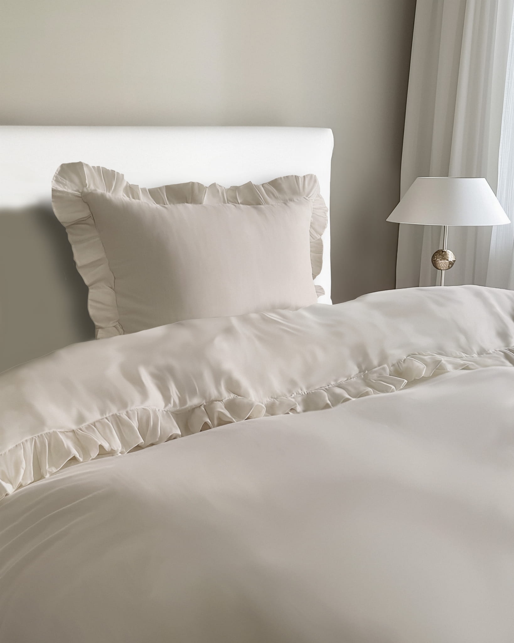 Szukasz pościeli, która łączy naturalność, wygodę i modny wygląd? Ten komplet z ozdobną falbaną to idealny wybór do sypialni w stylu boho, romantycznym lub vintage.
