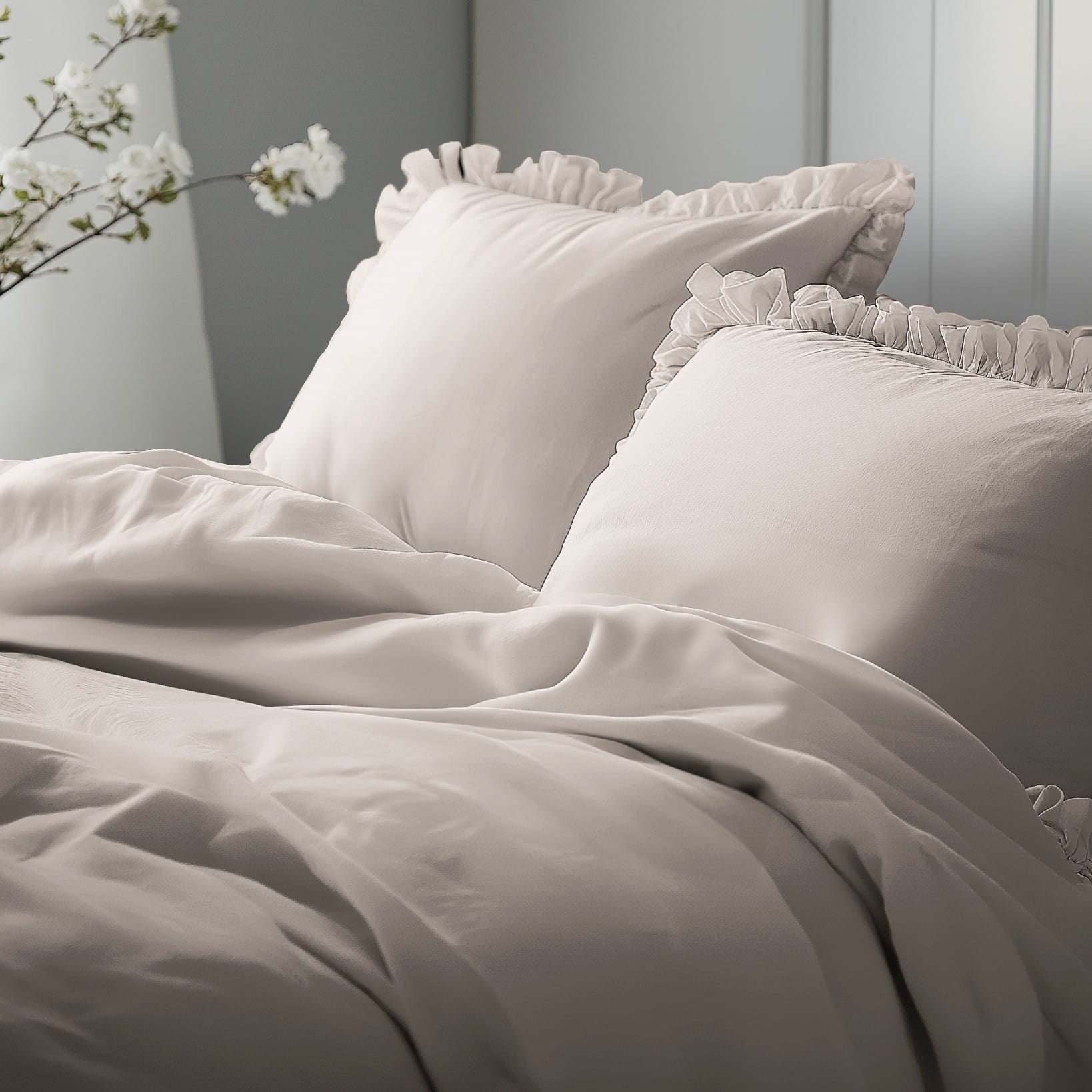 Szukasz pościeli, która łączy naturalność, wygodę i modny wygląd? Ten komplet z ozdobną falbaną to idealny wybór do sypialni w stylu boho, romantycznym lub vintage.