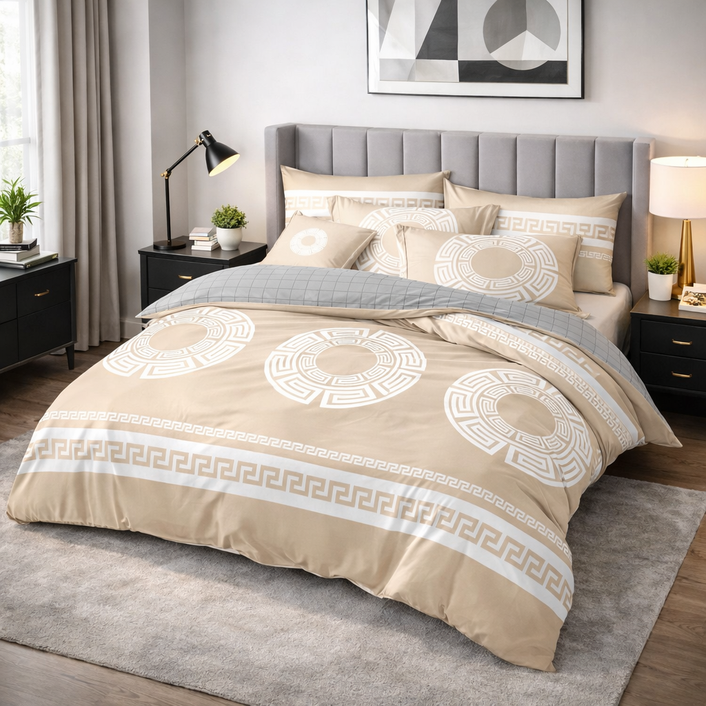 Beżowa dwustronna pościel w grecki wzór 200x220