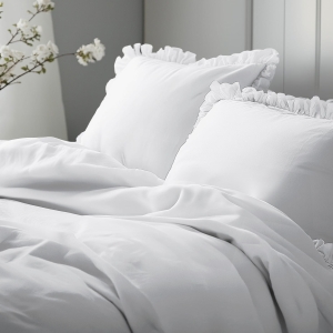 Biała bawełniana pościel z falbaną 160x200