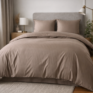 Czekoladowa bawełniana pościel hotelowa adamaszek z bizą 140x200 Mariot