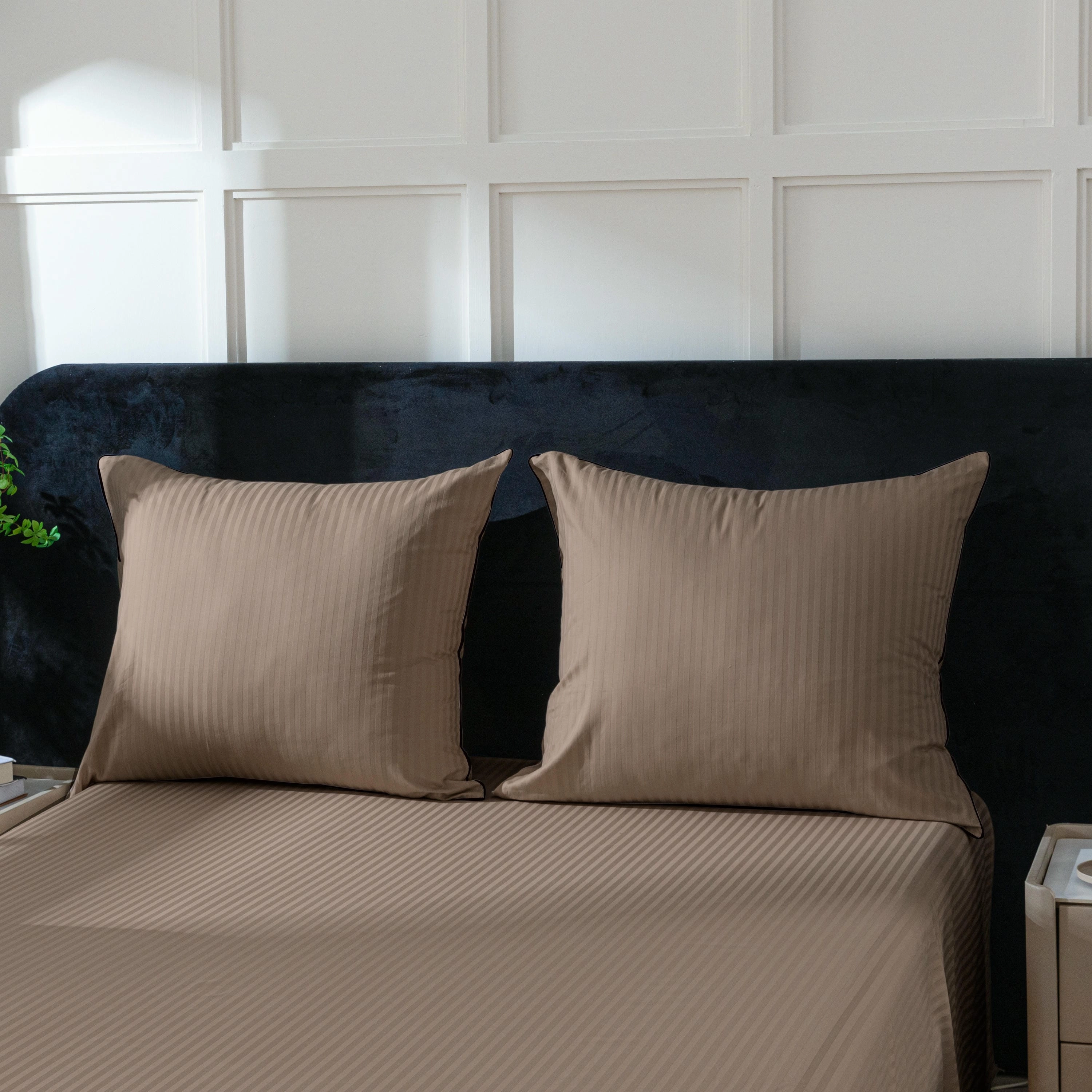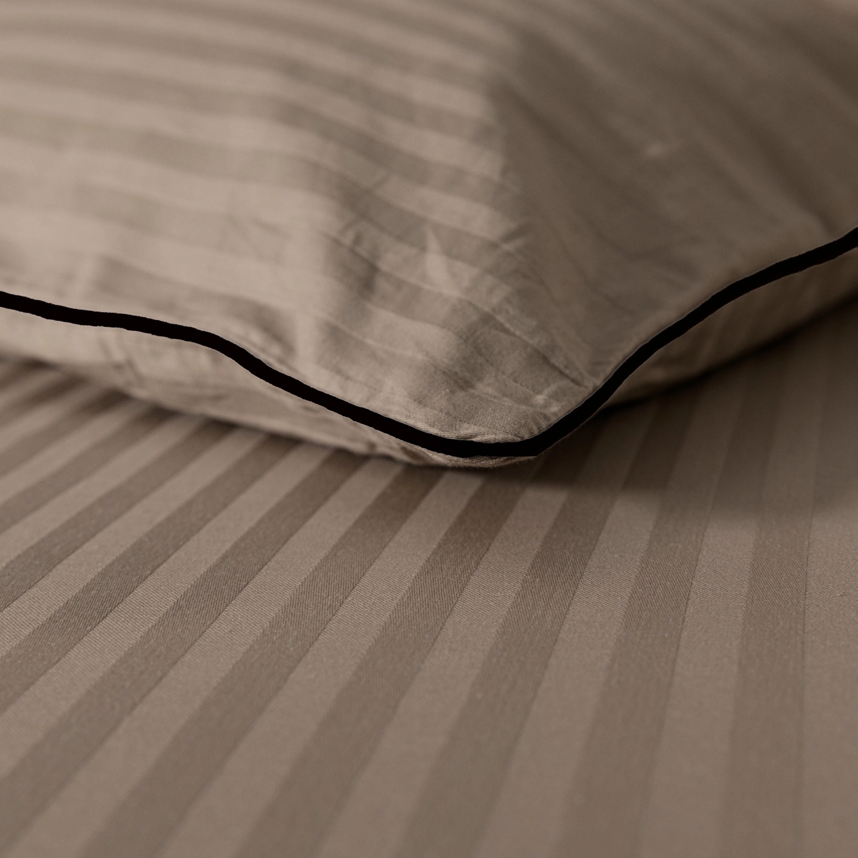 Styl hotelowy, który wprowadza do sypialni porządek, elegancję i ponadczasowy wygląd. Pościel wykonana w 100% z wysokiej jakości bawełny zachwyca subtelnym wzorem w pasy oraz dekoracyjną lamówką, która nadaje jej ekskluzywnego charakteru.