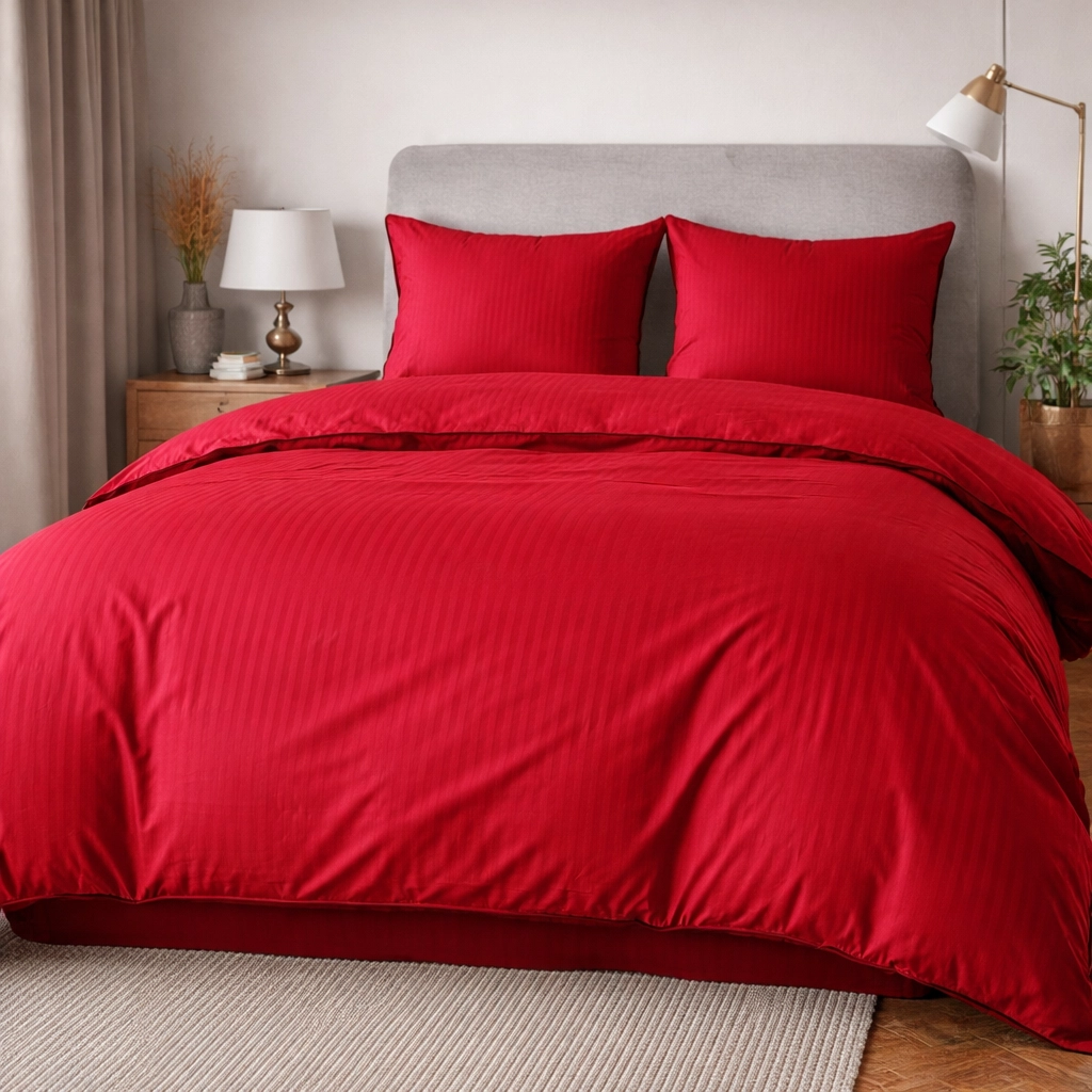 Czerwona bawełniana pościel hotelowa adamaszek z bizą 200x220 Mariot