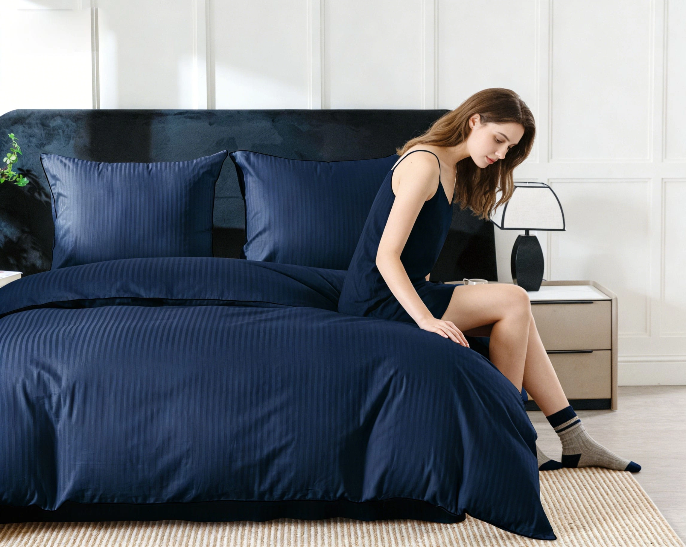 Styl hotelowy, który wprowadza do sypialni porządek, elegancję i ponadczasowy wygląd. Pościel wykonana w 100% z wysokiej jakości bawełny zachwyca subtelnym wzorem w pasy oraz dekoracyjną lamówką, która nadaje jej ekskluzywnego charakteru.