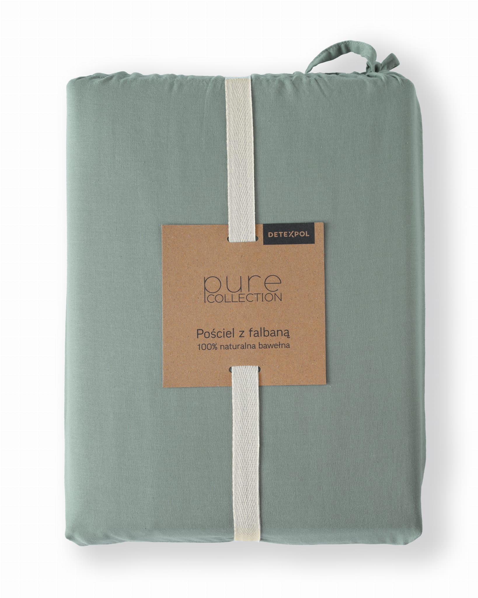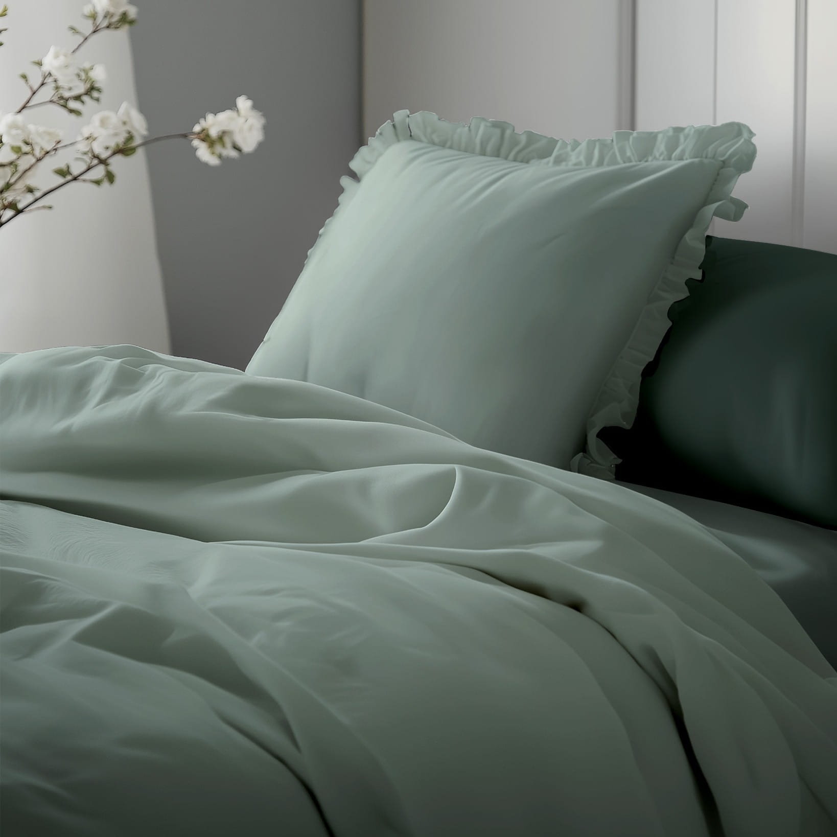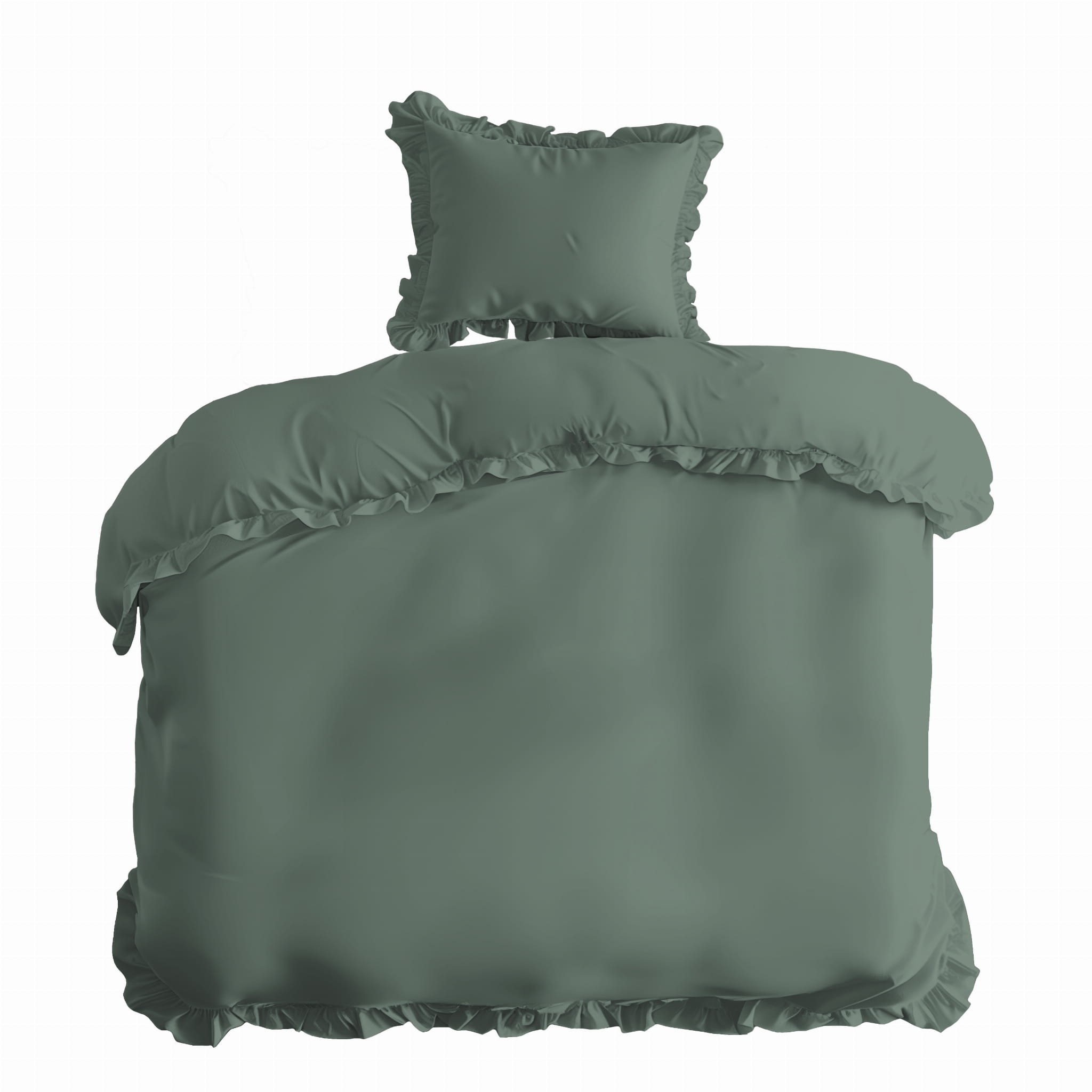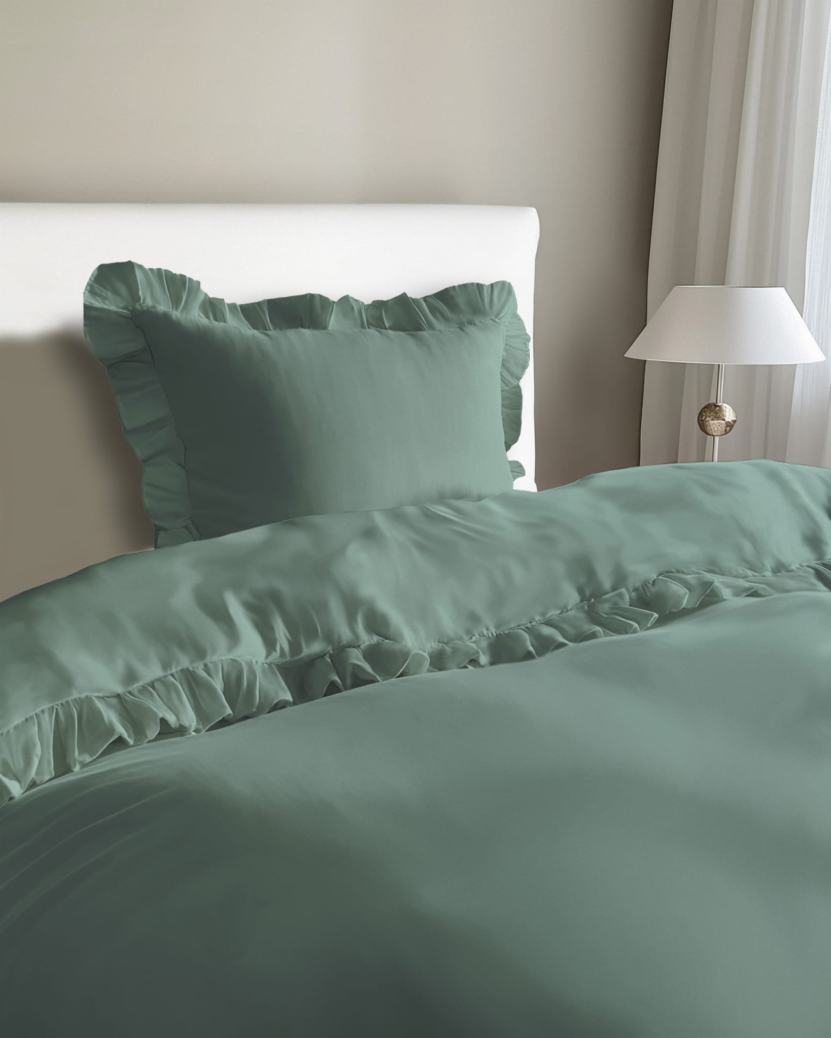 Miętowa bawełniana pościel z falbaną 140x200