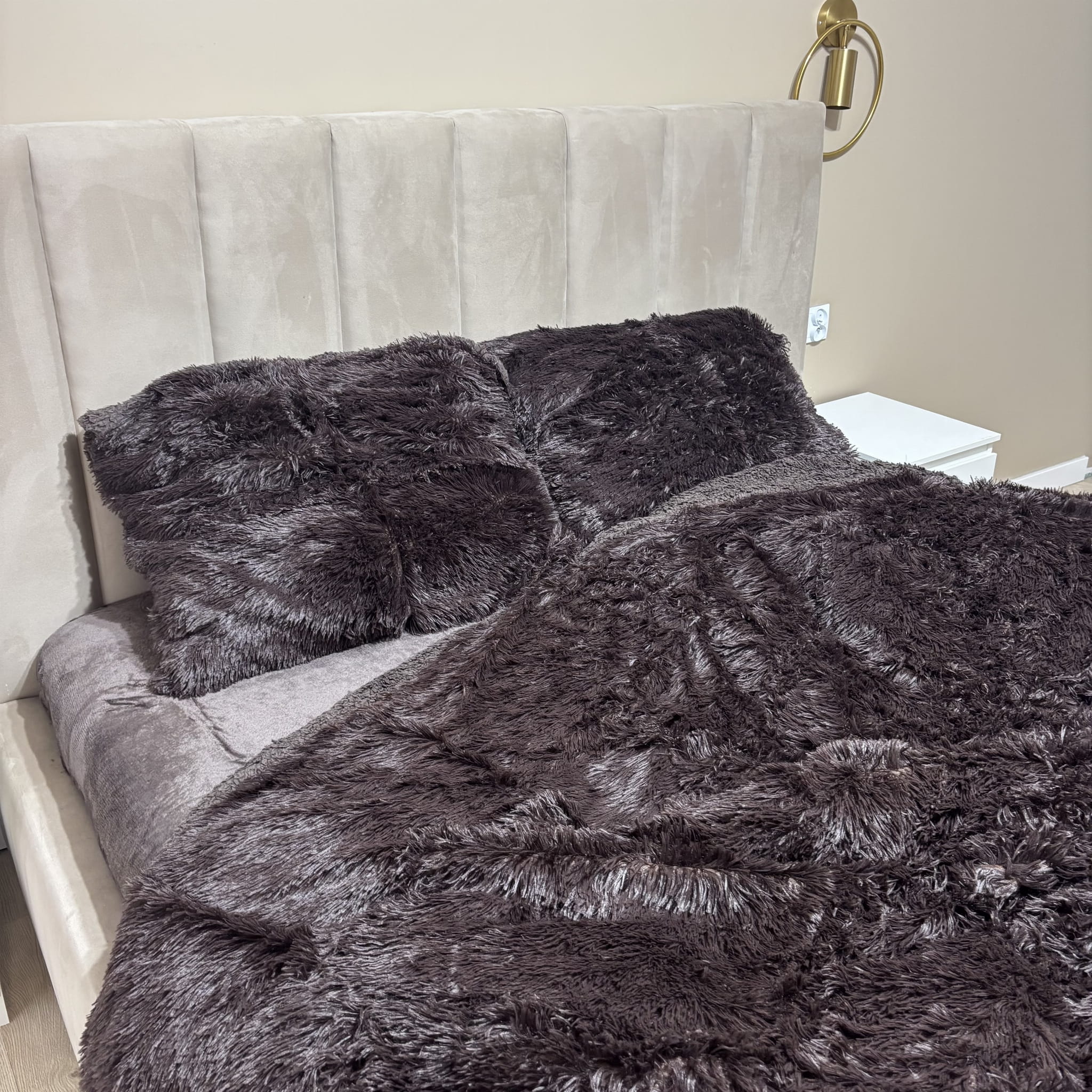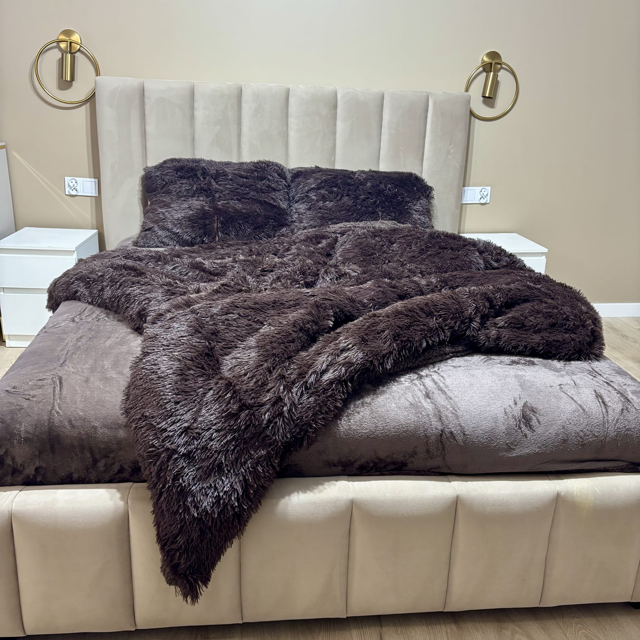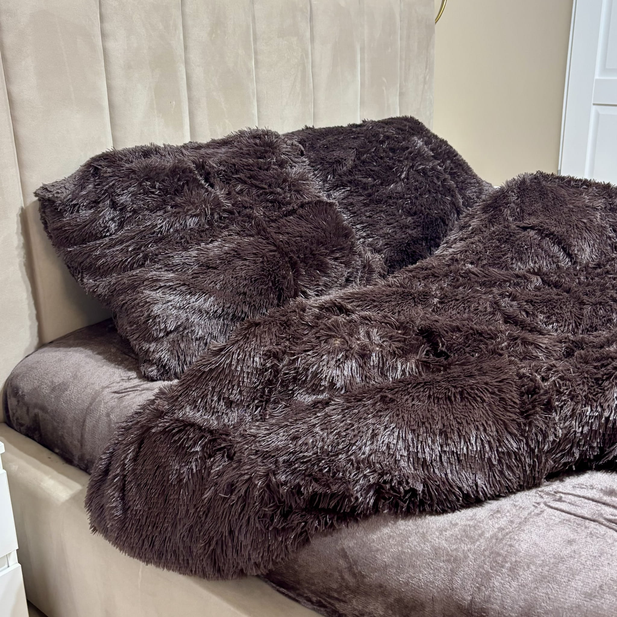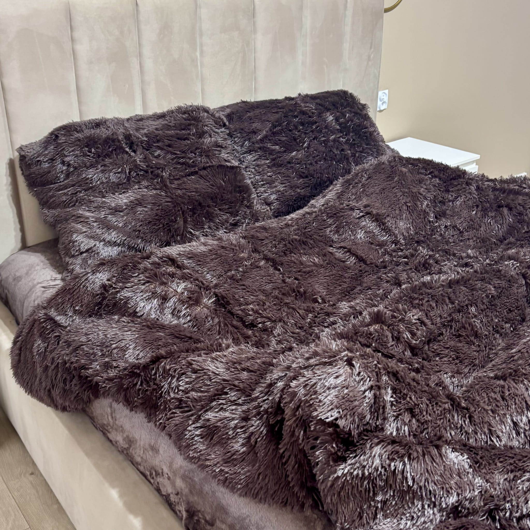 Pościel futrzana włochacz czekoladowa świąteczna zimowa 200x220