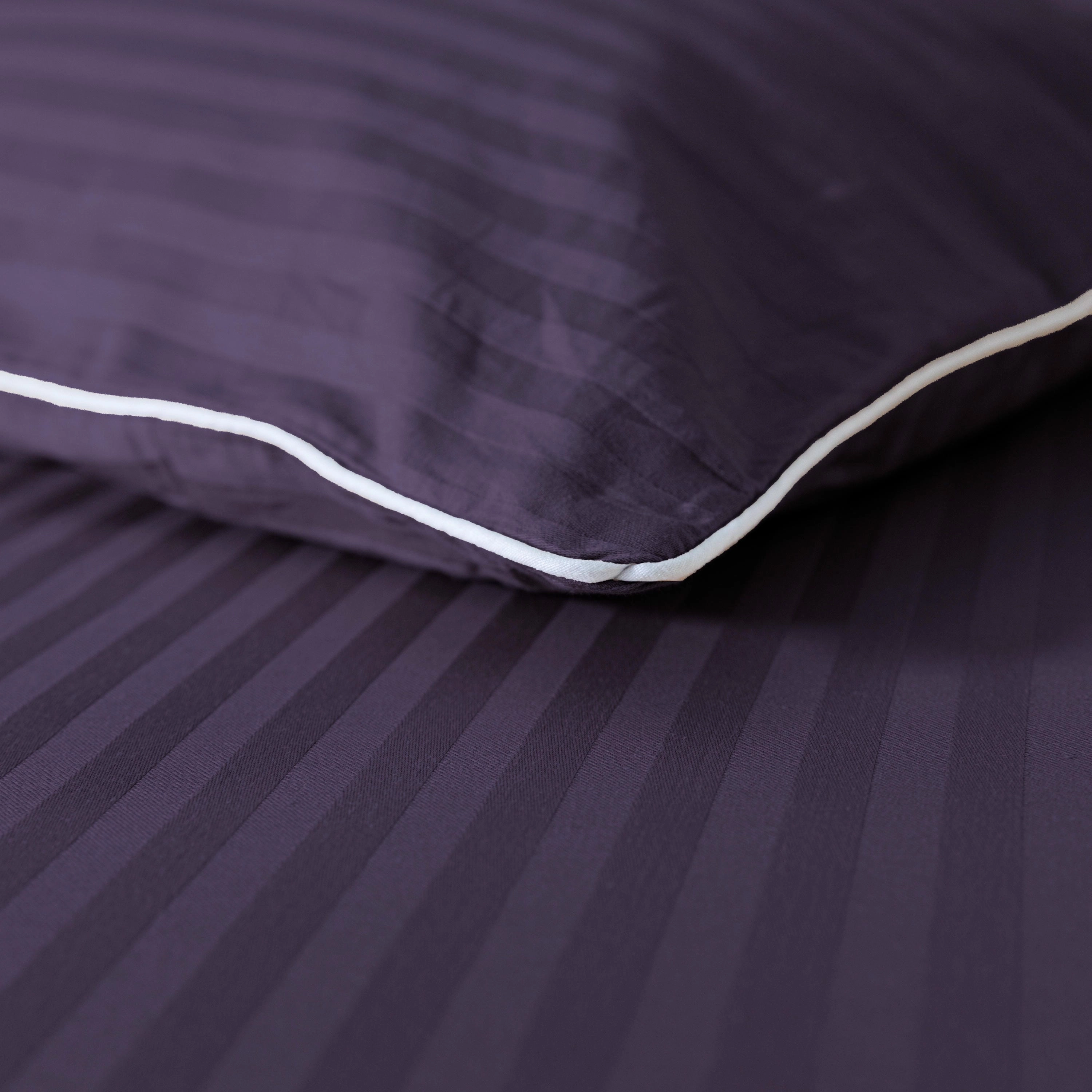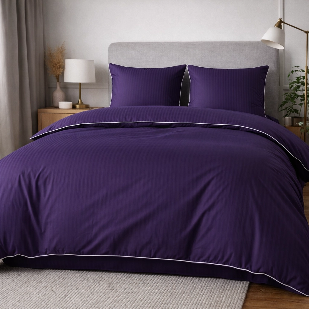 Śliwkowa bawełniana pościel hotelowa adamaszek z białą bizą 140x200 Mariot