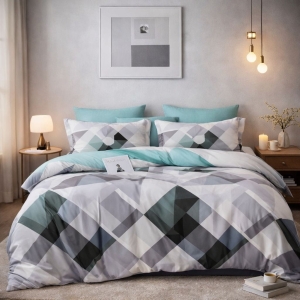 Szaro turkusowa dwustronna pościel w romby 160x200 z prześcieradłem
