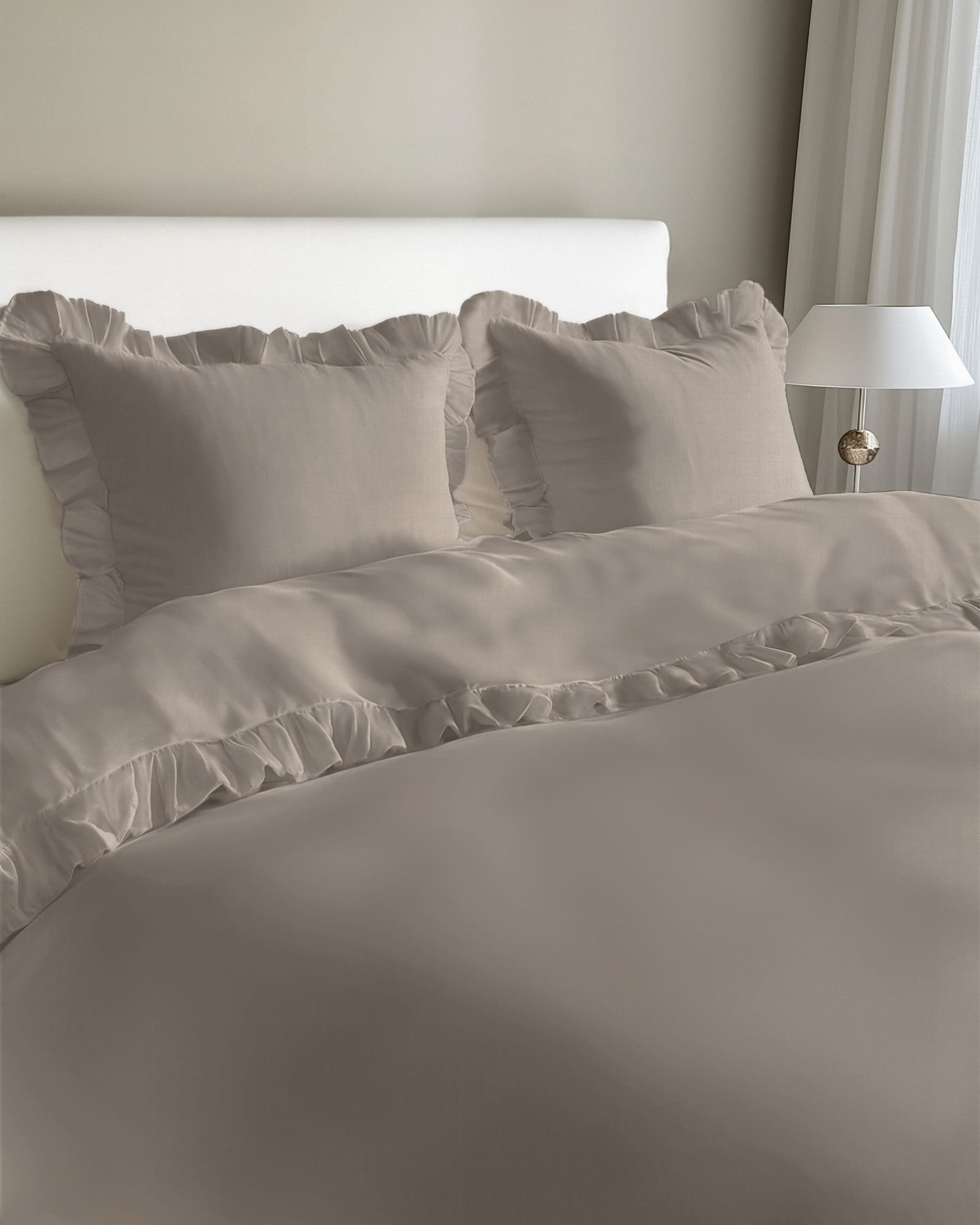 Szukasz pościeli, która łączy naturalność, wygodę i modny wygląd? Ten komplet z ozdobną falbaną to idealny wybór do sypialni w stylu boho, romantycznym lub vintage.